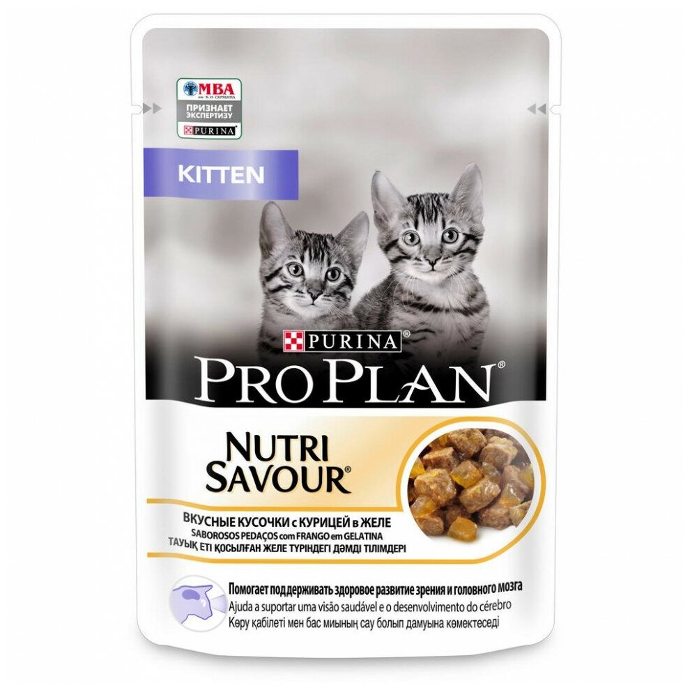 Влажный корм для котят Pro Plan Nutrisavour, с курицей 10 шт. х 85 г (кусочки в желе)