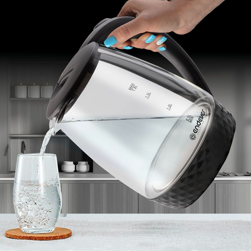 Купить Чайник электрический стеклянный Endever KR-337G / 1,8л / 2000 Вт