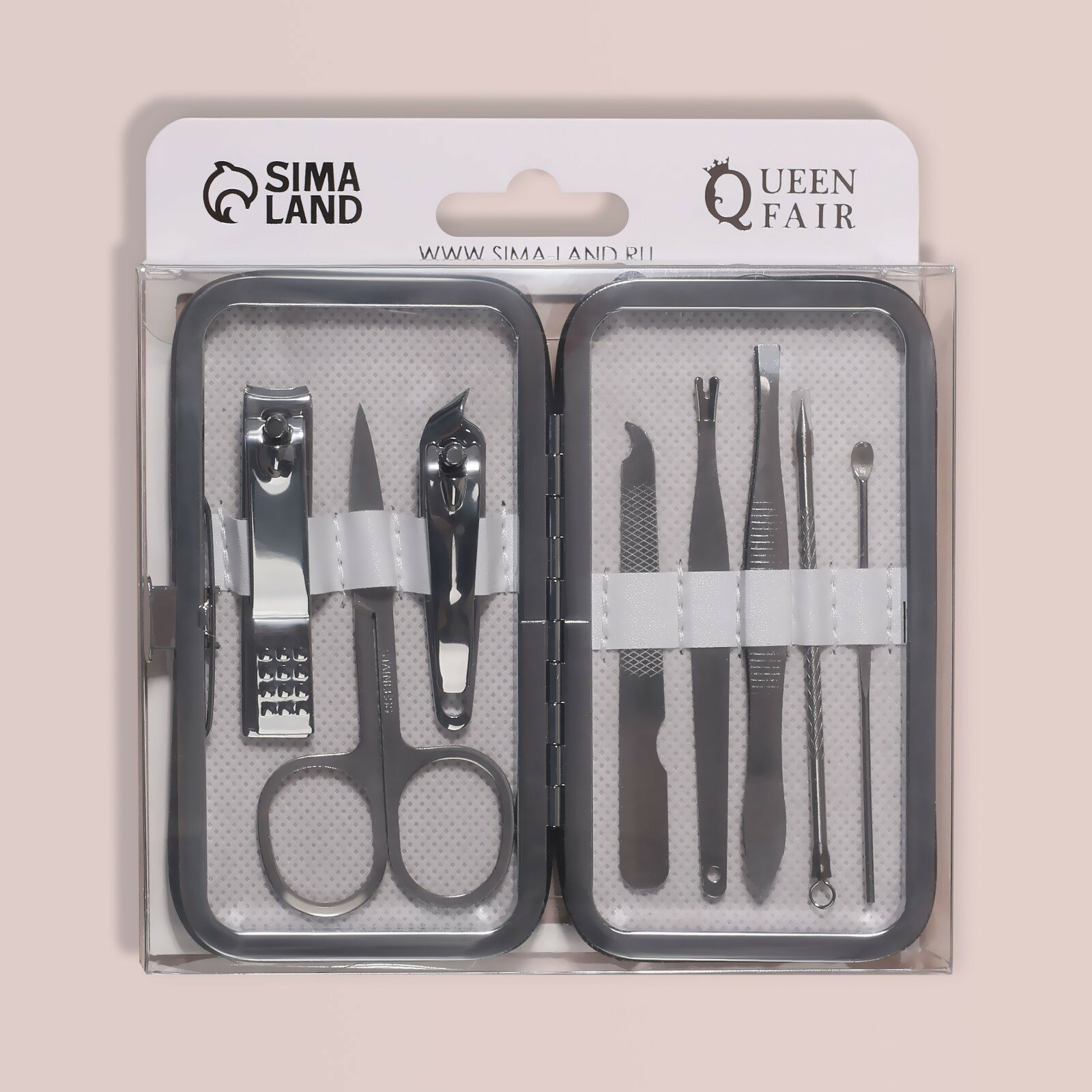 Queen fair Набор маникюрный «Фактура», 8 предметов, цвет чёрный