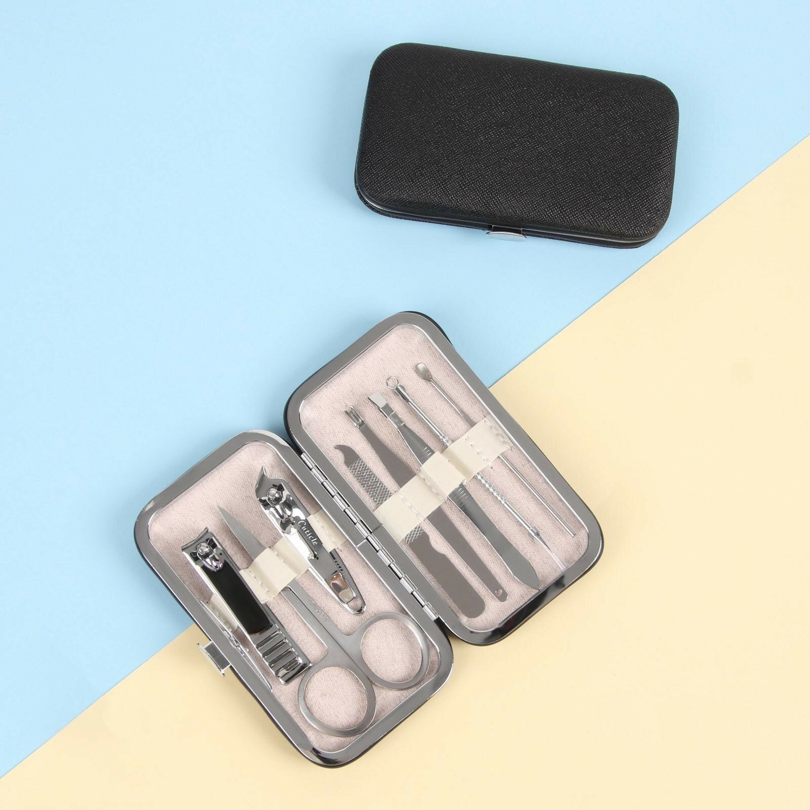 Набор маникюрный «Фактура», 8 предметов, в футляре, цвет чёрный