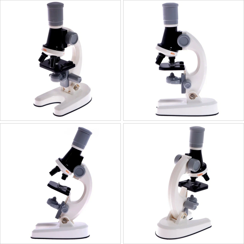 Купить Микроcкоп детский с набором для опытов, цвет белый / увеличение в 100х, 400х, 1200х , подсветка