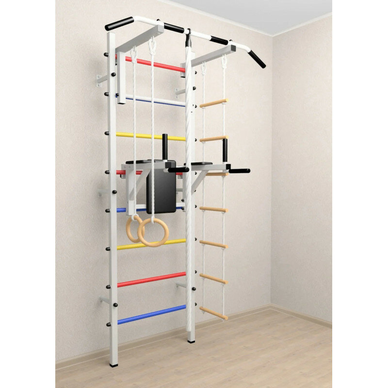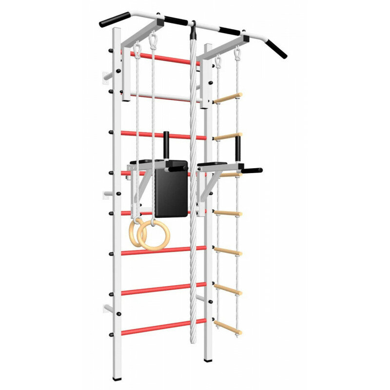 Шведская стенка Sv Sport 504б (ступени Белые / Турник стандарт к ШС / Канат, кольца, лестница / Брусья Sv Sport к ШС)