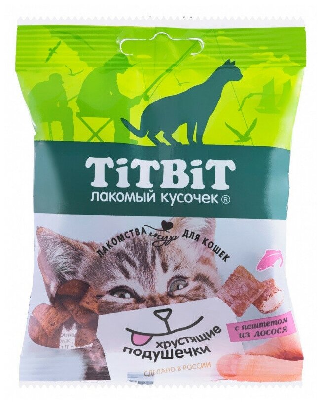 Купить TiTBiT 0,03кг хрустящие подушечки для кошек с паштетом из лосося