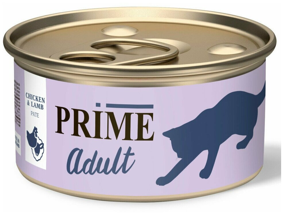 Купить Влажный корм для кошек PRIME Adult паштет из курицы и ягненка, железная банка, 75г, 24 шт.