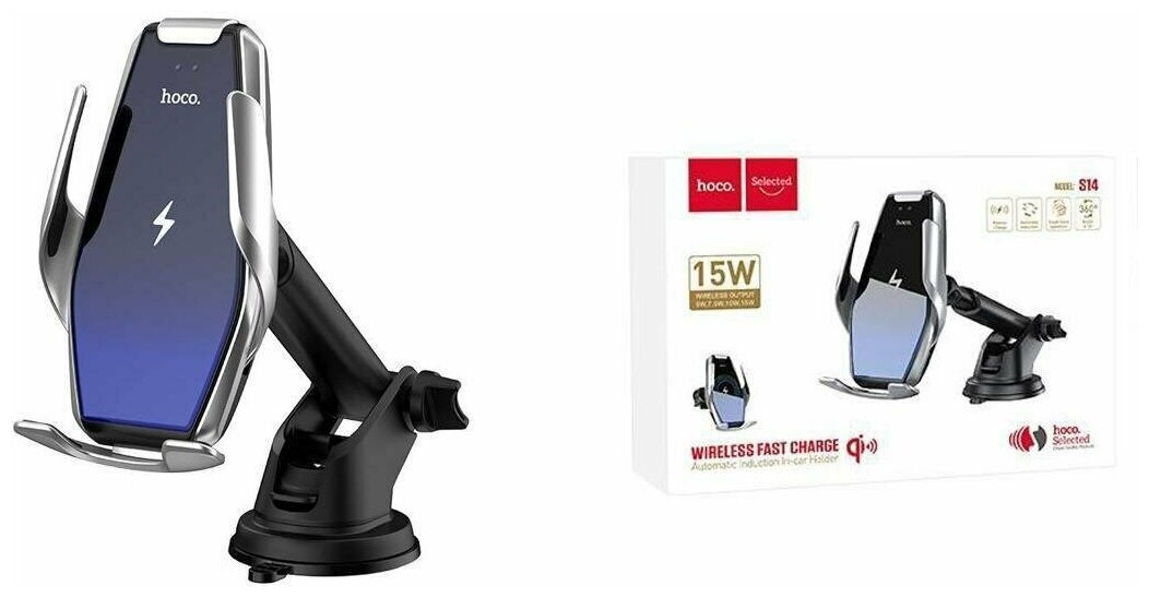 Держатель для телефона Hoco S14 с беспроводной зарядкой 15 Вт