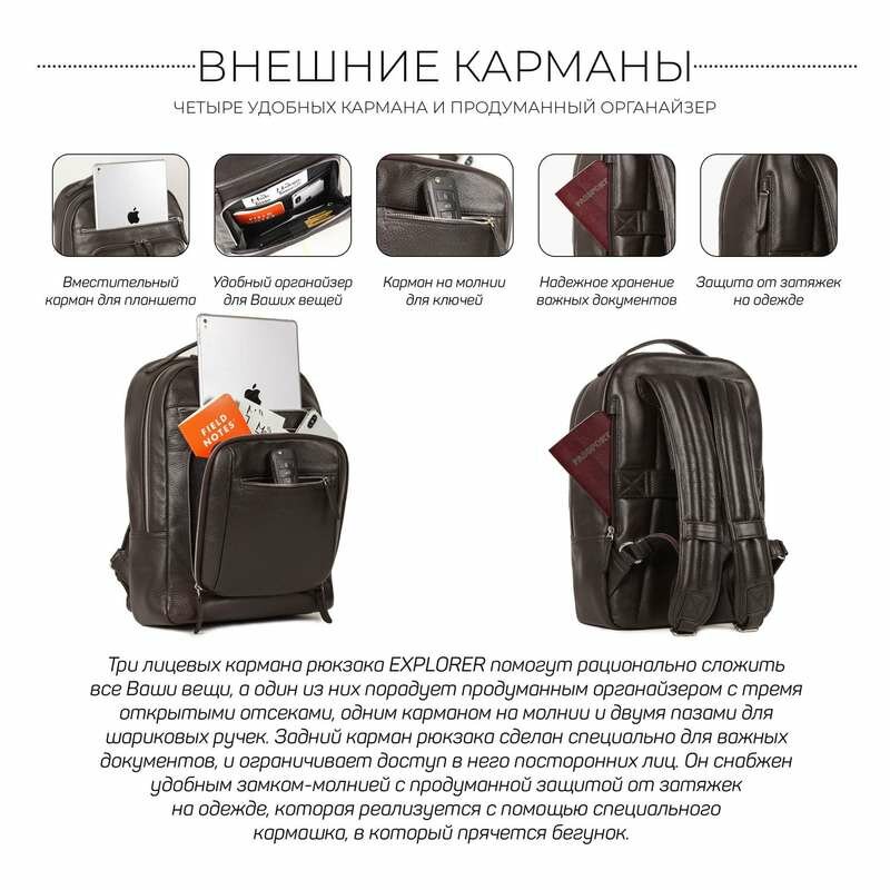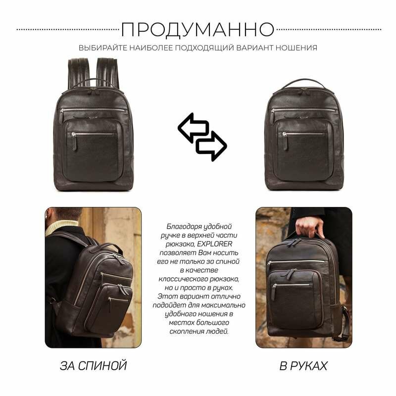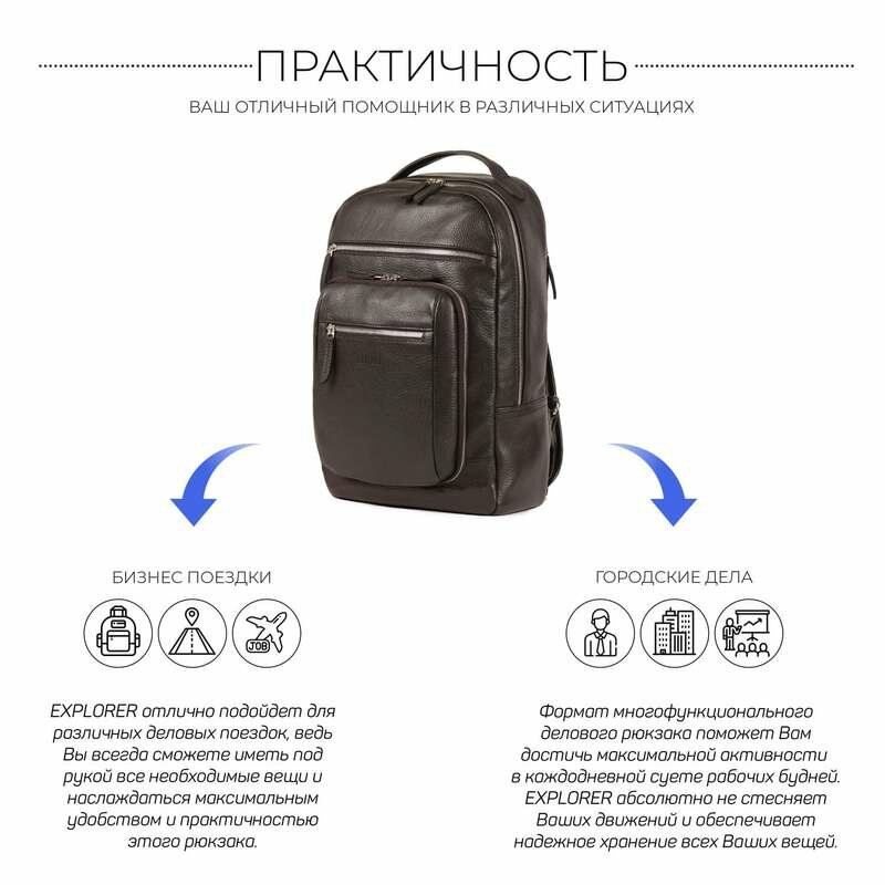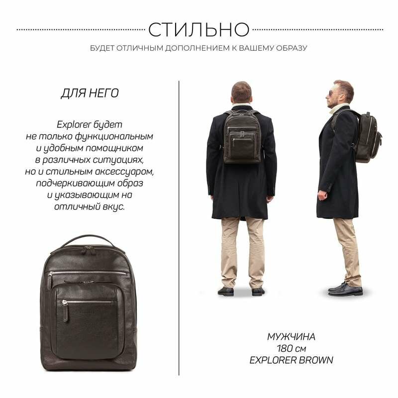 Стильный деловой рюкзак с 24 карманами и отделениями BRIALDI Explorer (Эксплорер) relief brown интересное: