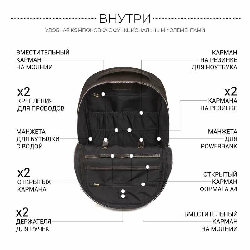 Плюсы: - огромное количество удобных карманов - петли для авторучек/карандашей - стильный внешний вид - хорошие молнии - петли для проводов в основном отделении - резинки для пауэрбэнка/зонтика/воды в основном отделении Минусы: - не нашел ))) |