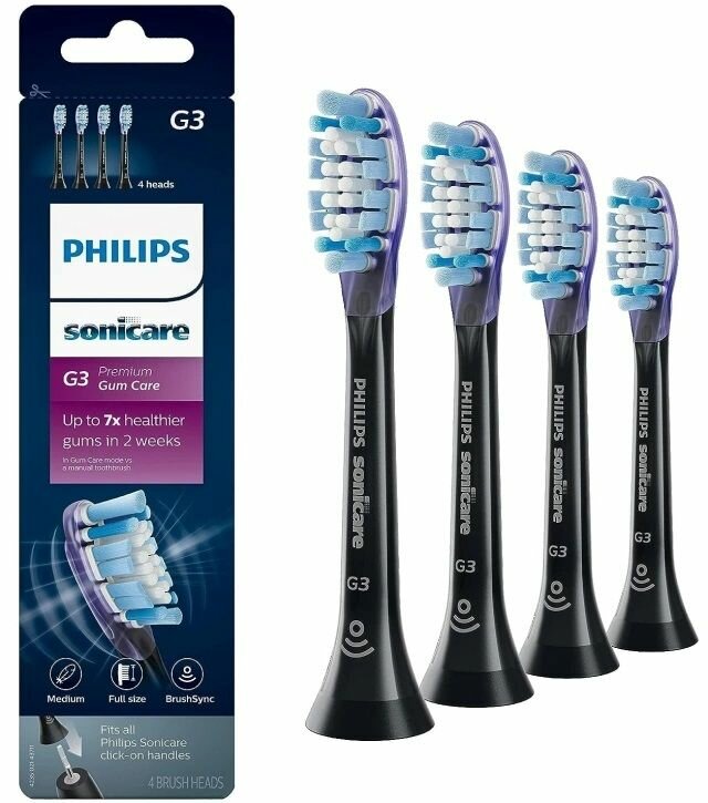 Насадки Philips Sonicare G3 Premium Gum Care HX9054/33 для улучшения состояния дёсен, черный (4 шт)
