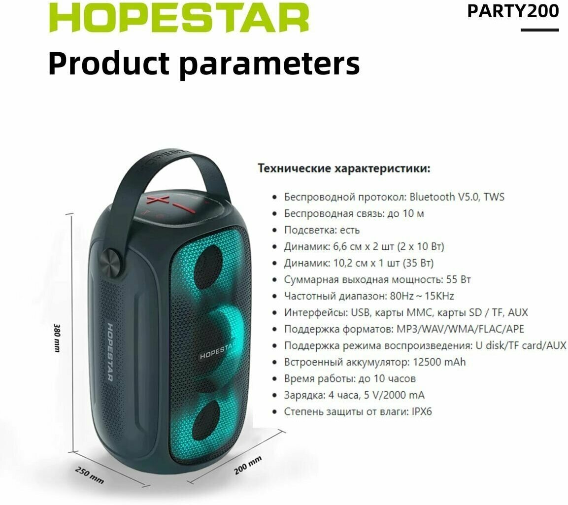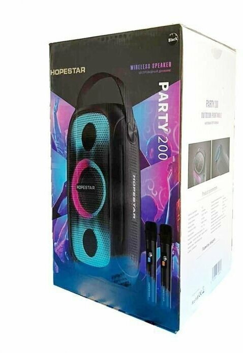 Портативная колонка Hopestar Party 200 с беспроводным микрофоном, черная интересное: