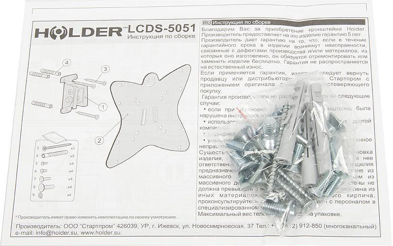 Кронштейн на стену Holder LCDS-5051 темный металлик интересное: