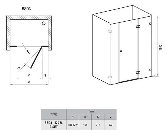Душевая дверь Ravak BSD3 120 R хром + Транспарент