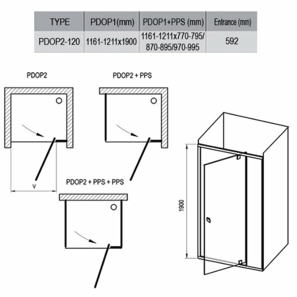Душевая дверь Ravak Pivot PDOP2-120 03GG0300Z1 профиль Черный стекло Transparent
