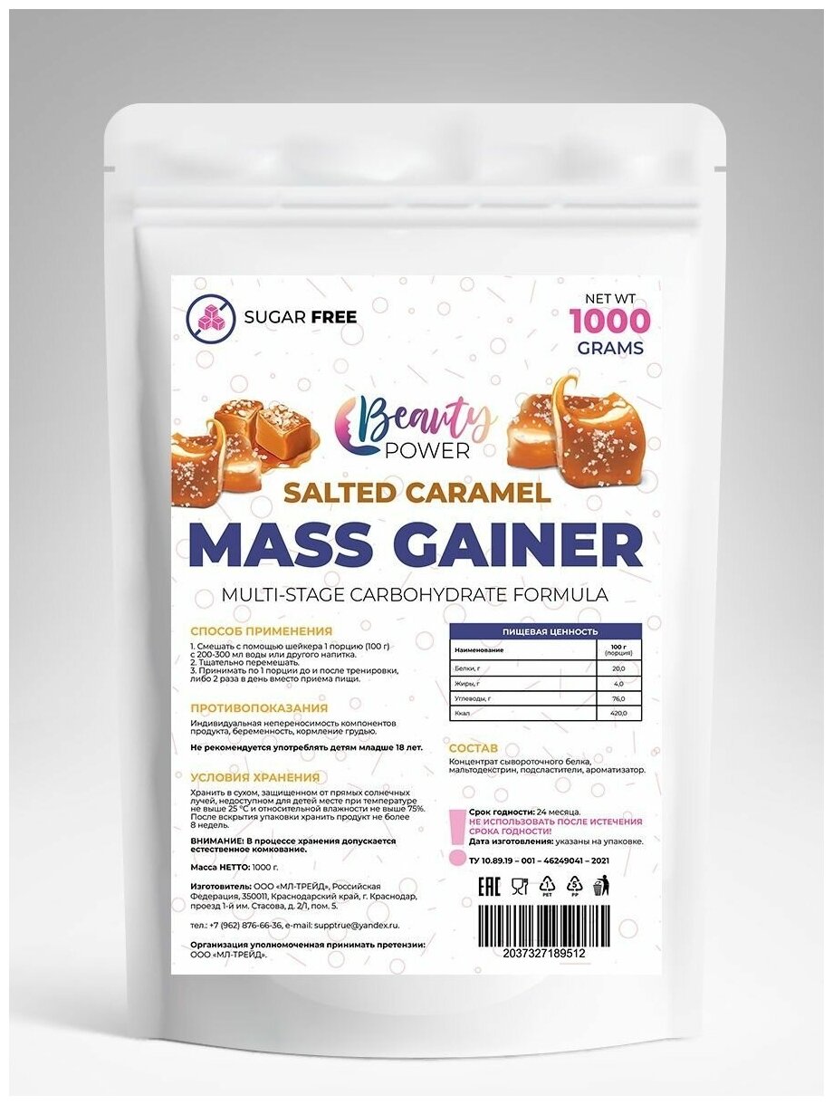 Beauty Power Гейнер высокоуглеводный быстрый со вкусом Соленая карамель 1000г интересное: