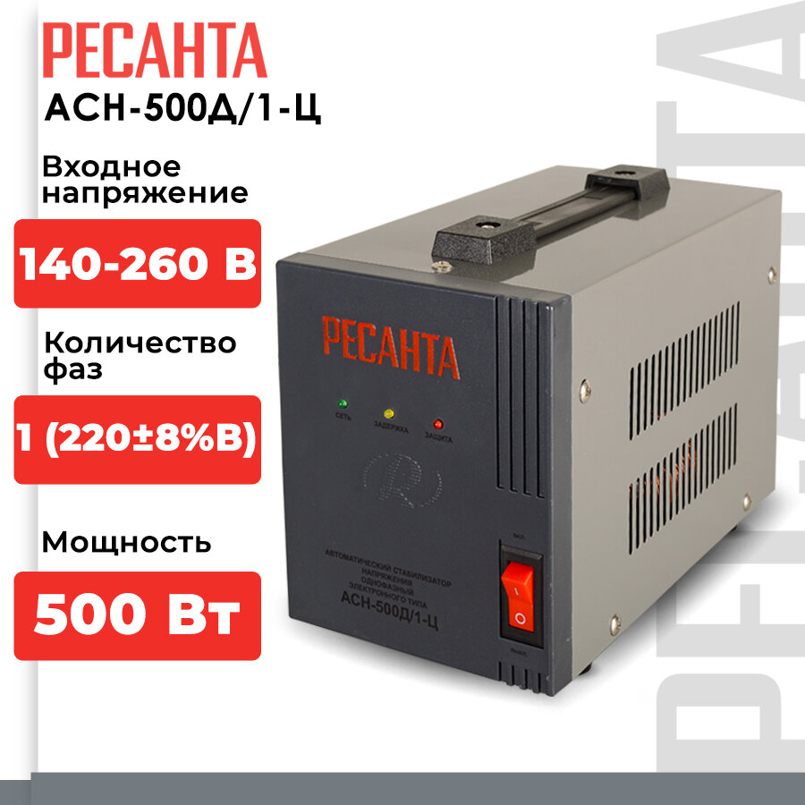 Стабилизатор напряжения однофазный Ресанта АСН-500Д/1-Ц, 0.5 кВт