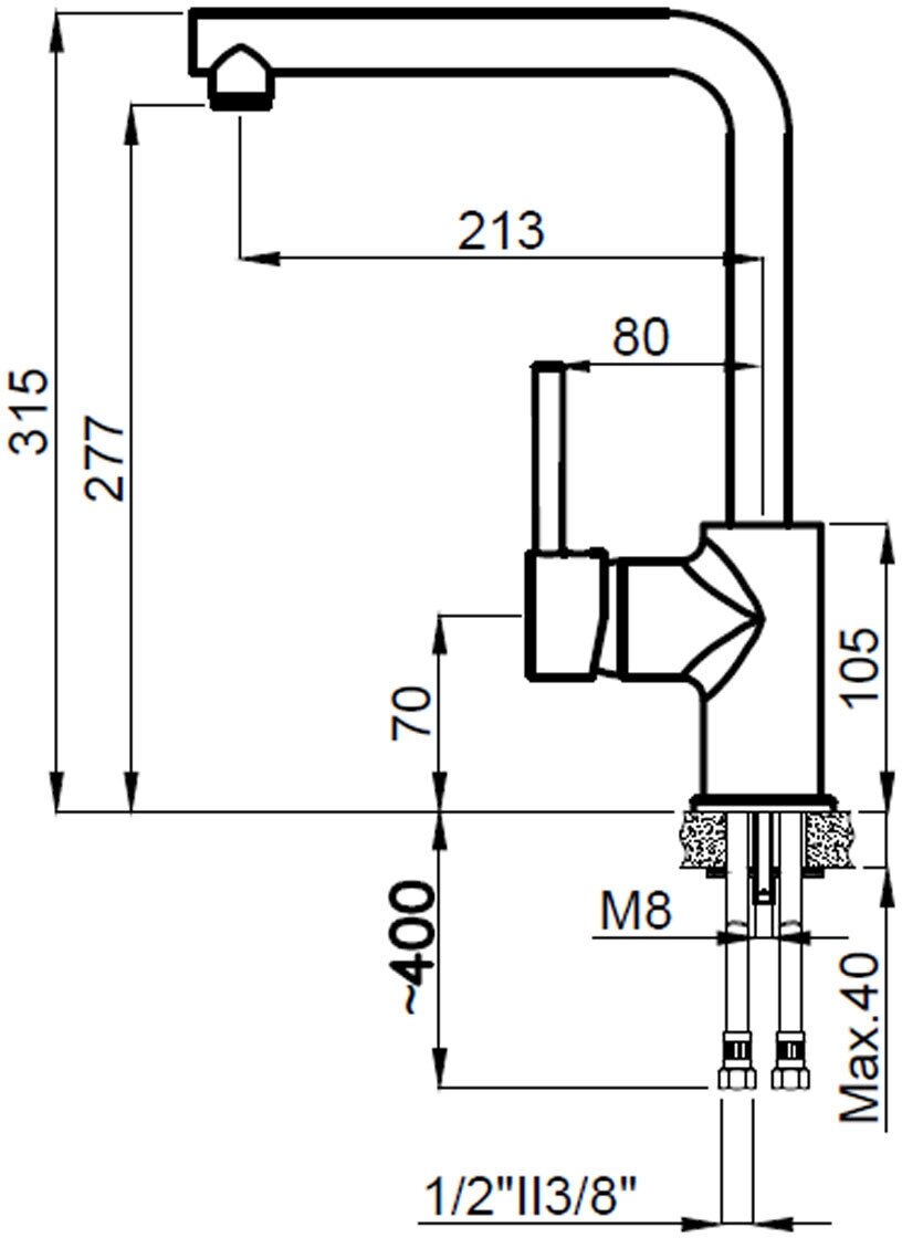 | Длина излива | 213 мм |