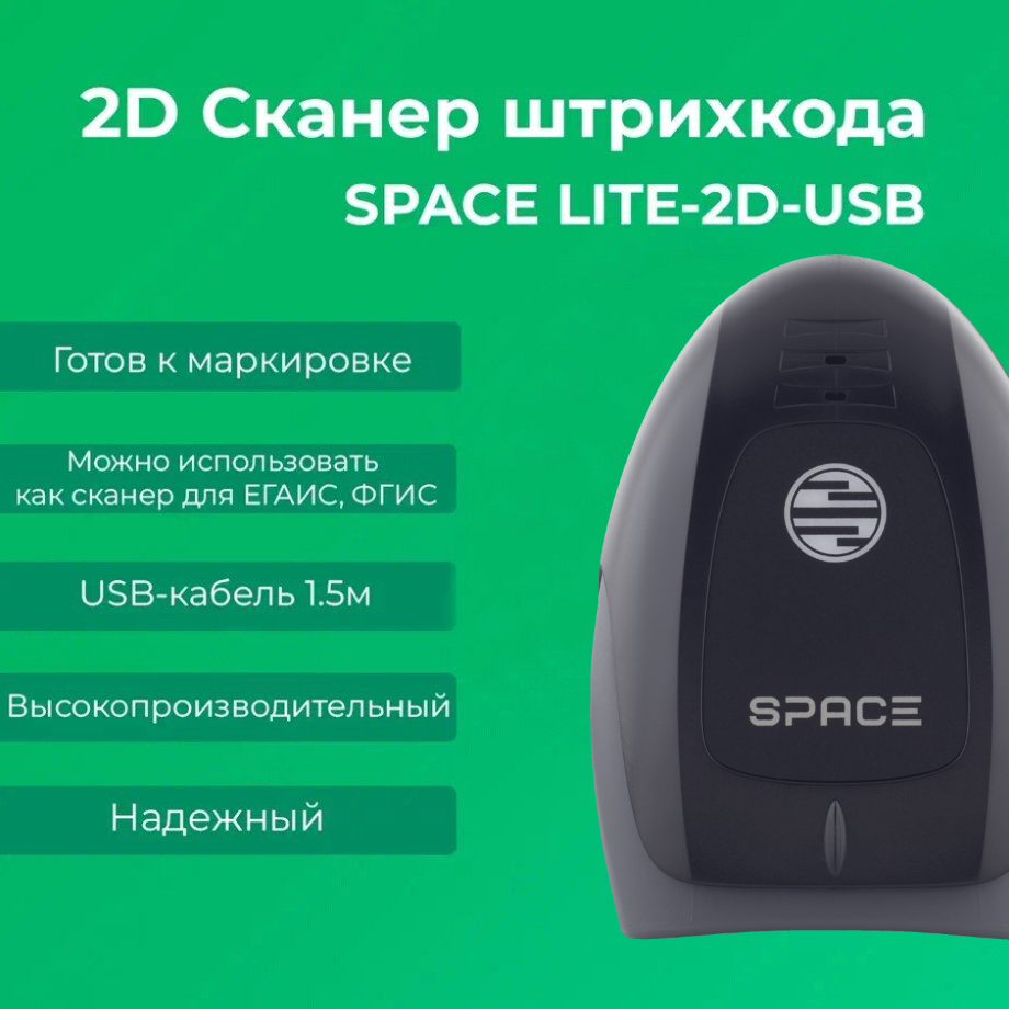 Сканер штрих-кода SPACE LITE-2D-USB (черный), ручной интересное: