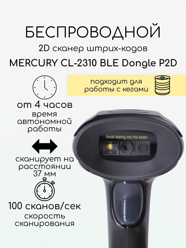 Сканер 2D MERCURY CL-2310 BLE Dongle P2D (USB, черный, беспроводной)
