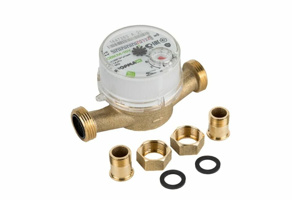 Счетчик воды норма универсальный 1/2" свкм 15У d=15мм L=110мм со сгонами интересное: