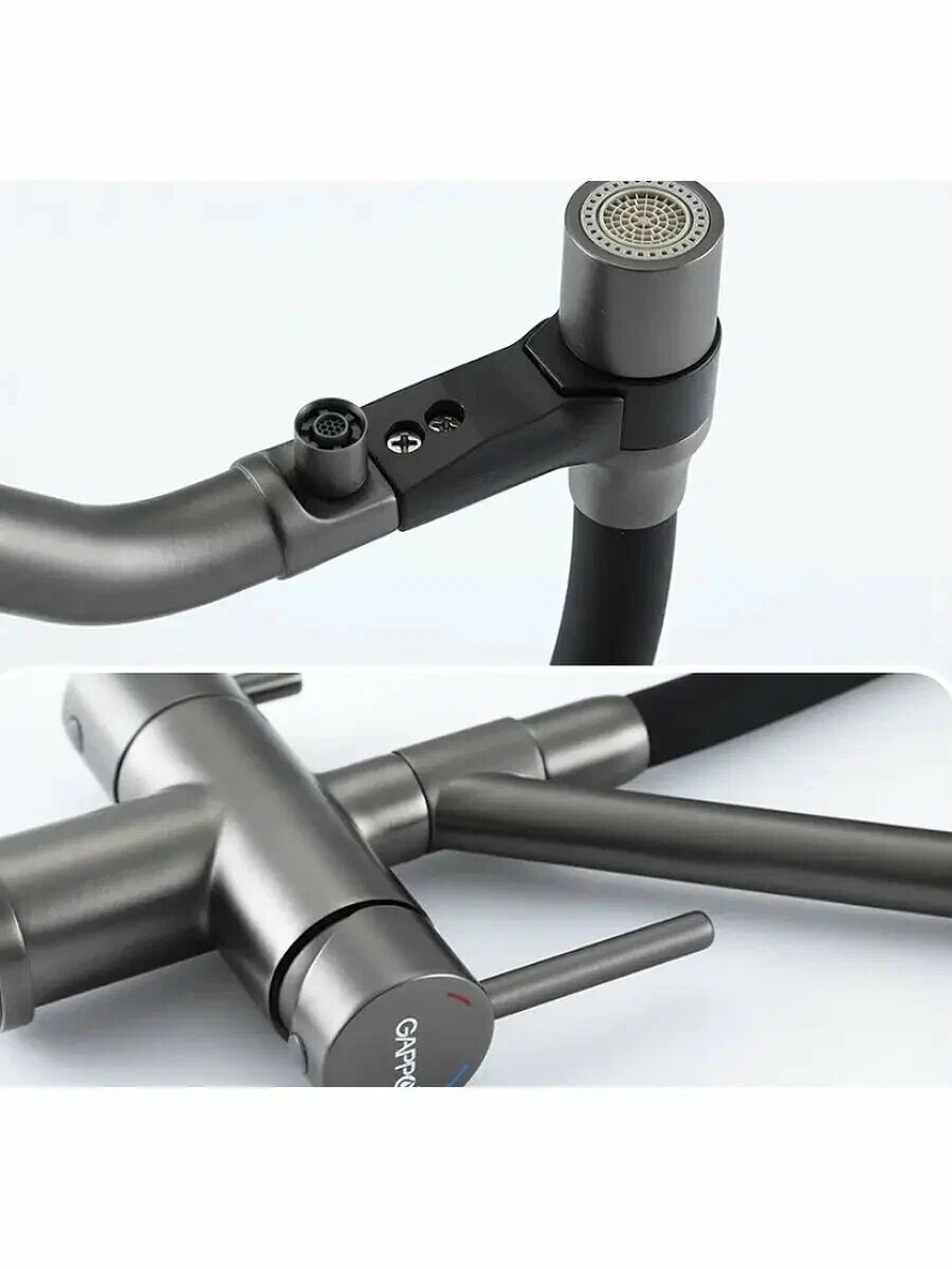 Смеситель для кухни(мойки) Gappo G4398-69, с подключением фильтра, гибкий излив, оружейная сталь