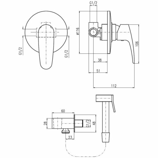 Rav Slezak Amur Смеситель для биде с скрытой частью душевая лейка (AM742)