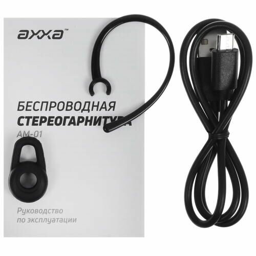 Беспроводная моногарнитура AM-01, BT 5.0, 100 мАч, чёрный, AXXA