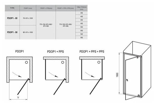 PDOP1-90 сатин+транспарент, Pivot душевая дверь одноэлементная, ручки сатин интересное: