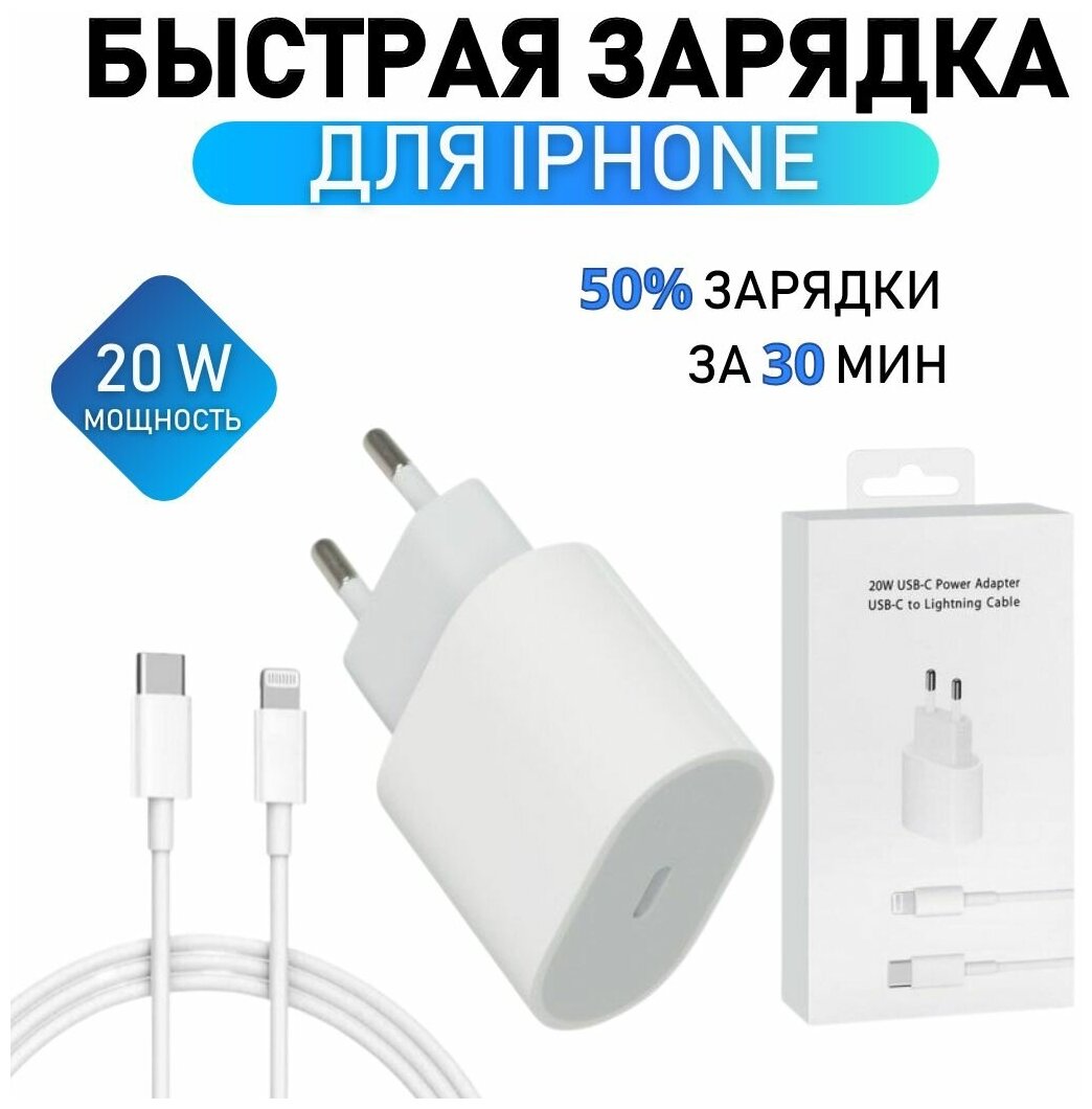 Купить Комплект сетевого зарядного устройства для айфона + кабель lightning быстрая зарядка