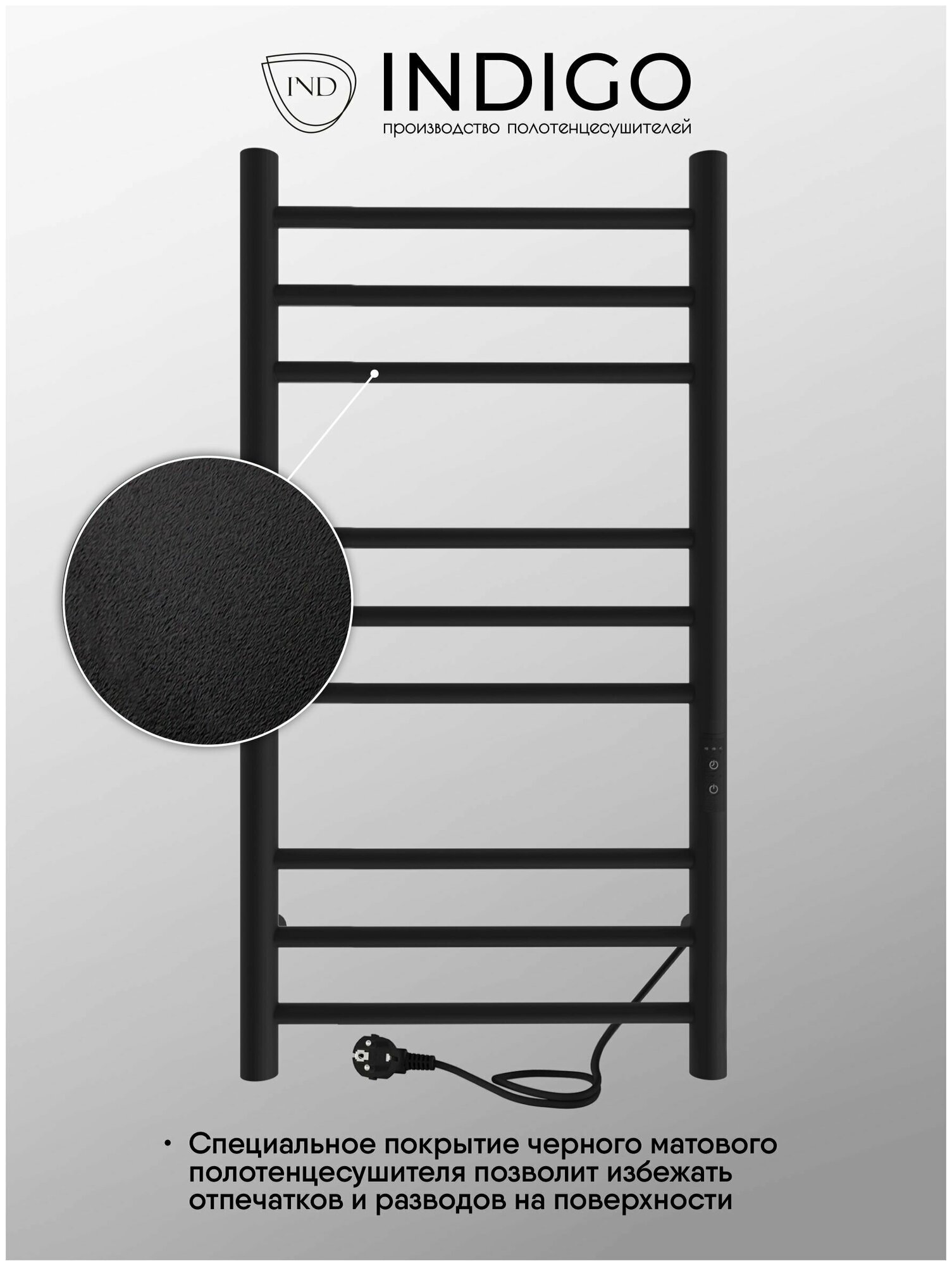 Полотенцесушитель электрический INDIGO Line Trinity 80/50 таймер, скрытый монтаж, универсальное подключение, Черный муар