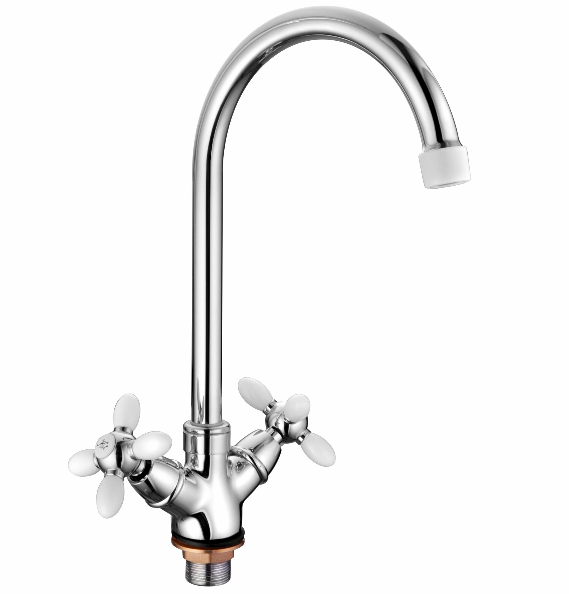 Смеситель кухня на гайке крест Силумин Белый+Хром Accoona A4582G
