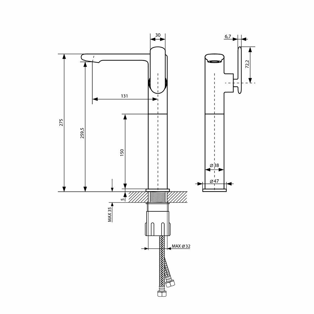 Смеситель для раковины высокий Lavelly Vertex хром однорычажный