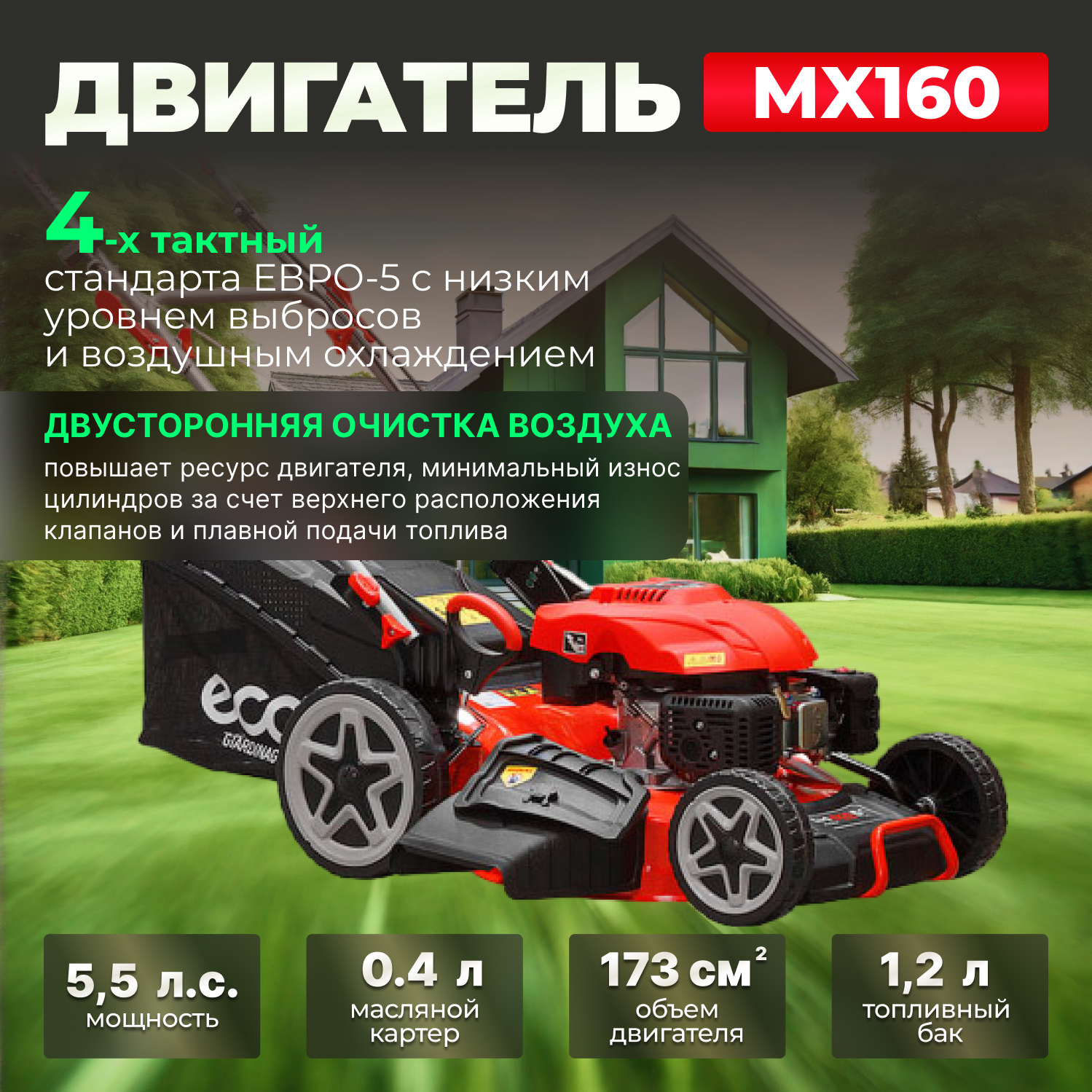 Газонокосилка бензиновая ECO LG-735 самоходная (6.0 л.с., шир. 51 см, самоходная, авт.заслонка, мульчир., стальн. корпус, травосборник 70 л)