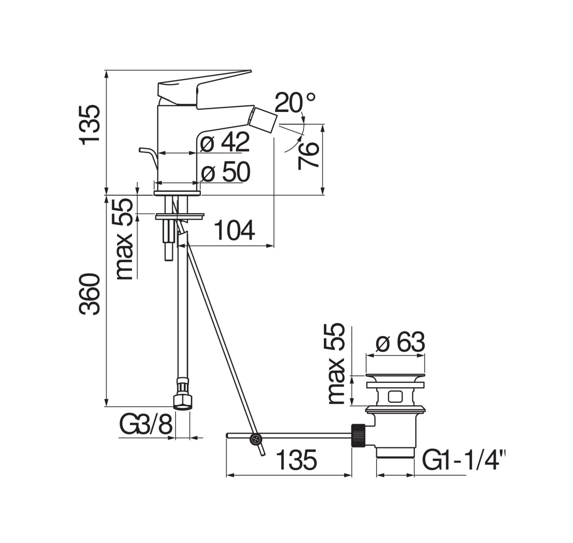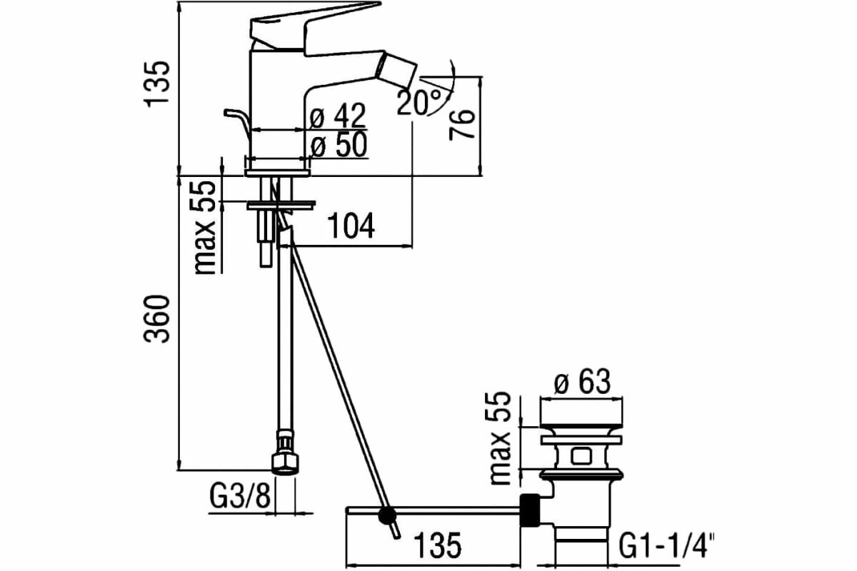 | Длина излива | 104 мм |