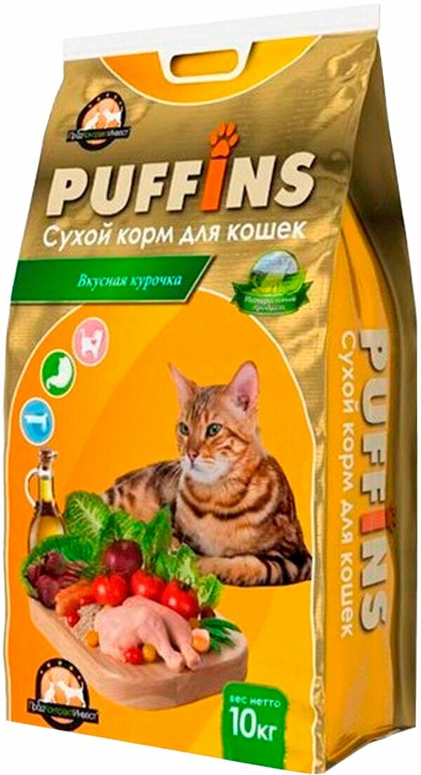 Корм для кошек сухой Puffins , полнорационный, Вкусная курочка 10 кг