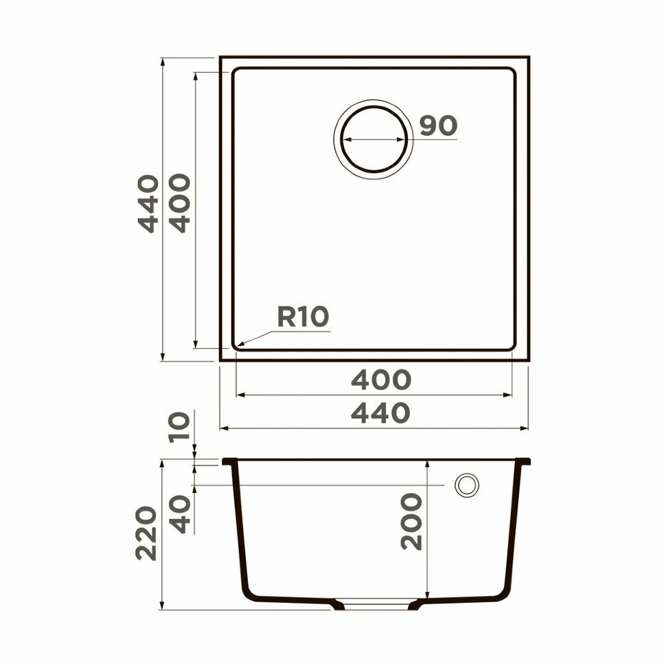 Врезная кухонная мойка ZETT lab Модель 260 T260Q, 47.5х73.2см, искусственный камень