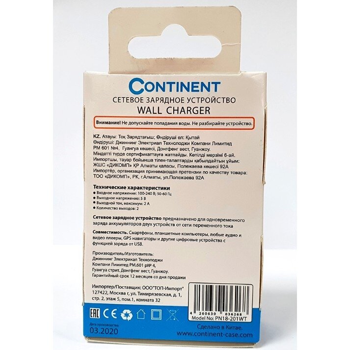 Зарядное устройство Continent PN18-201 WT для смартфонов USB интересное: