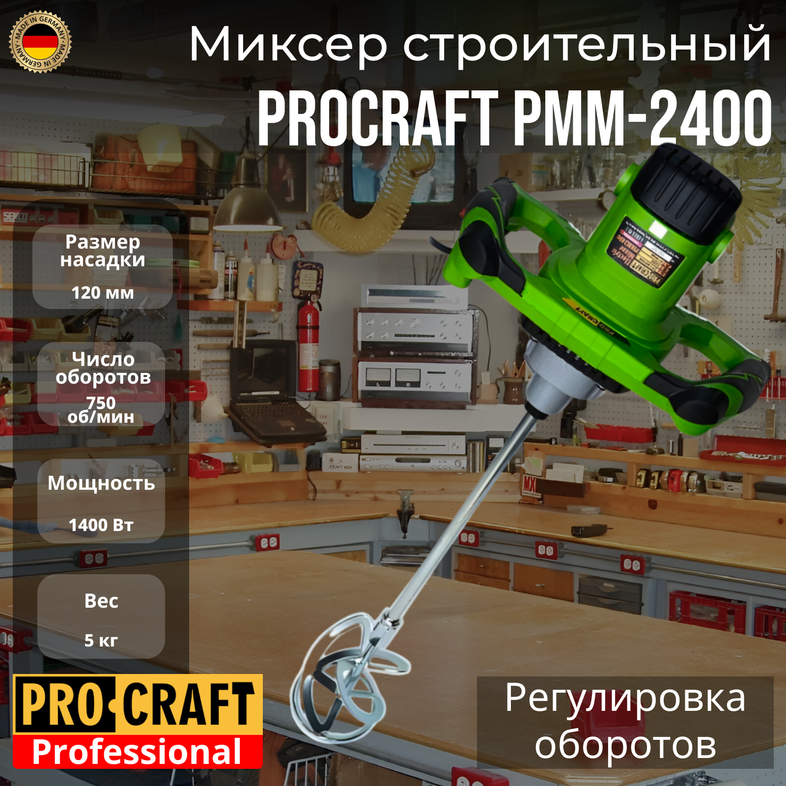 Миксер электрический строительный Procraft PMM-2400, 750об/мин, 1400Вт интересное: