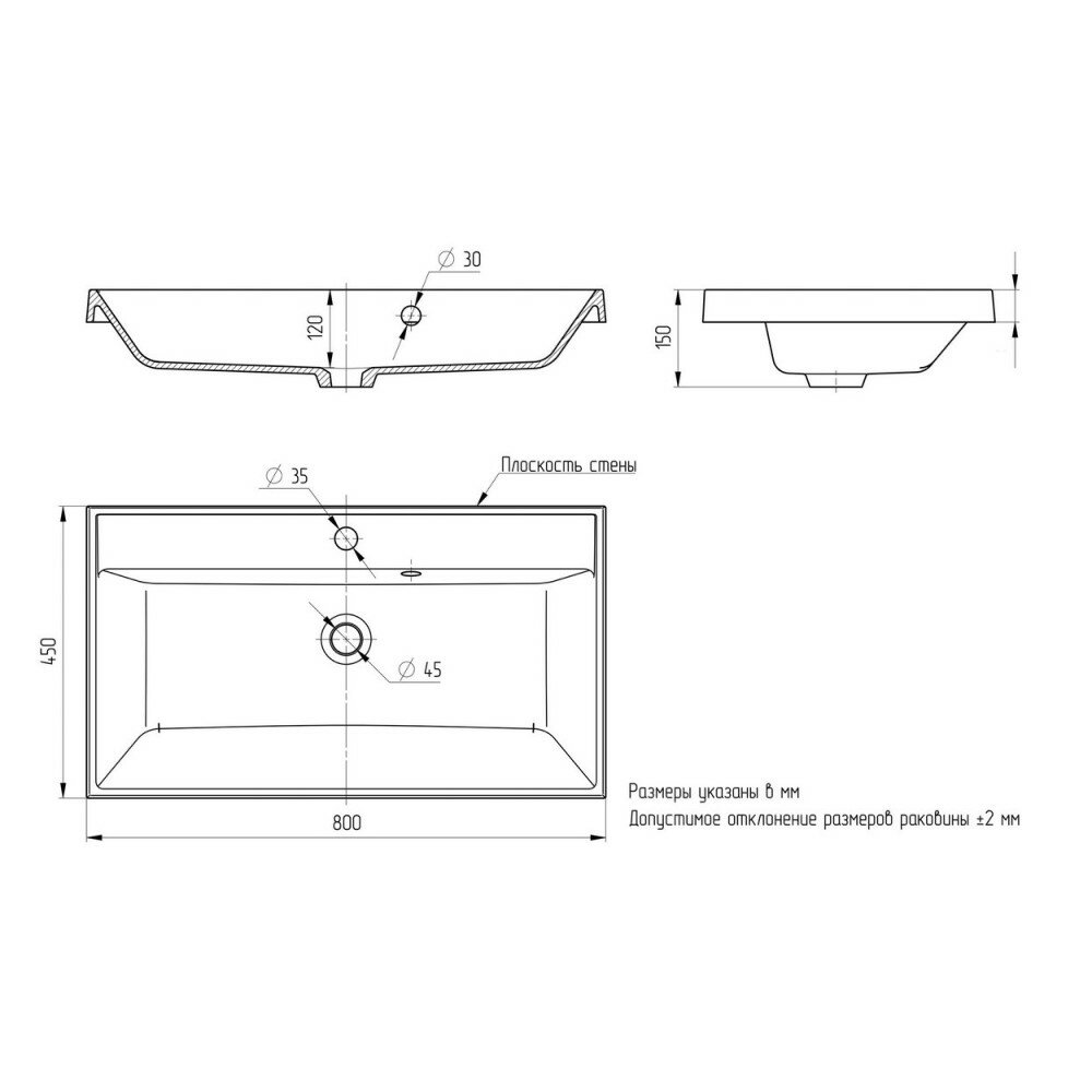 | Диаметр сливного отверстия | 45 мм |