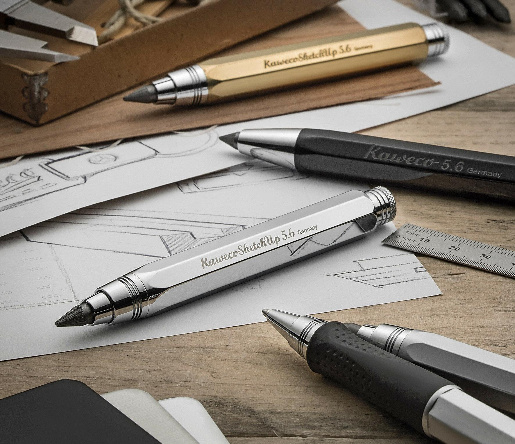 Карандаш цанговый KAWECO SKETCH UP Satin Chrome 5.6мм латунный корпус в подарочном футляре