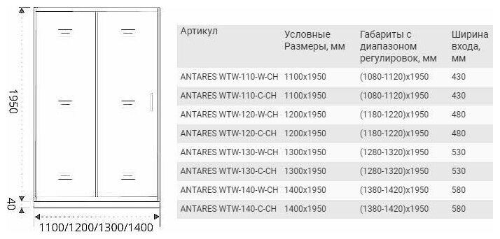 Душевая дверь Good Door Antares WTW 110х195 прозрачная, хром (WTW-110-C-CH) интересное: