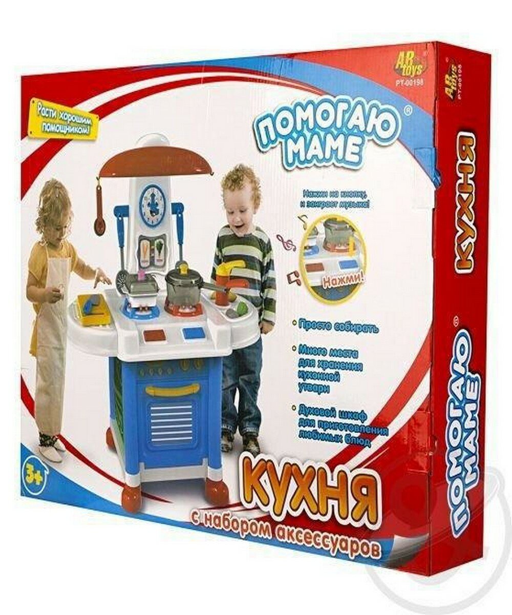 Кухня детская с набором аксессуаров, со звуковыми эффектами Помогаю маме, в коробке, 45х10х59,5см - ABtoys [PT-00198]