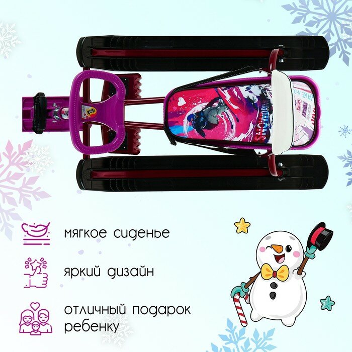 Снегокат "Тимка спорт 4-1 Единорог", ТС4-1М/ЕР, со спинкой и ремнём безопасности, цвет розовый/серый/сиреневый