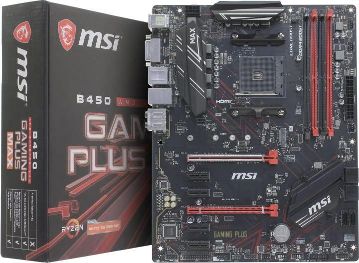 MSI B450 GAMING PLUS MAX (Soc-AM4 AMD B450 4xDDR4 ATX AC`97 8ch(7.1) GbLAN RAID+DVI+HDMI) RTL