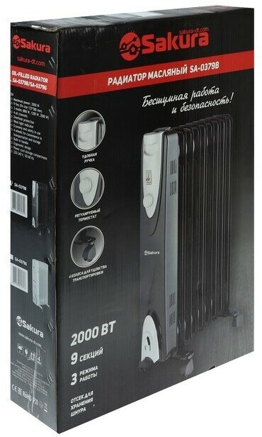Обогреватель Sakura SA-0379B, масляный, 2000 Вт, 9 секций, черный 7513748