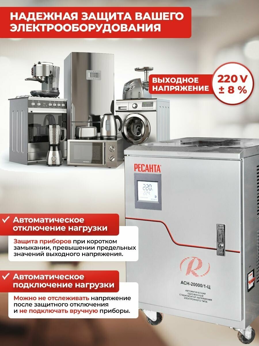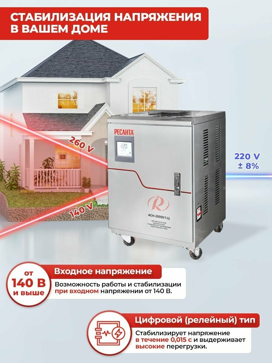 Однофазный релейный стабилизатор напряжения Ресанта АСН-20000/1-Ц для дома 16000 17000 18000 19000 20000 Вт 16 17 18 19 20 кВт 63/6/19