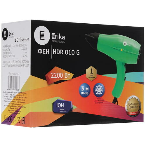 Ниже Вы можете прочитать отзывы на Фен ERIKA ER HDR 010G 2200W, зеленый, ознакомится с подробными характеристиками, посмотреть интересные обзоры и фотографии на Фен ERIKA ER HDR 010G 2200W, зеленый.
