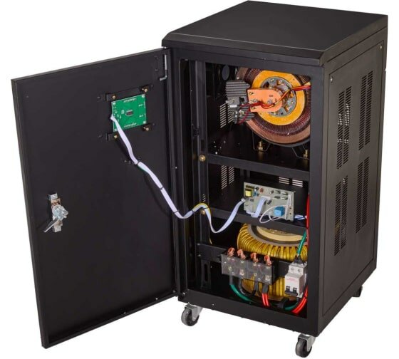 | Плюсы: | напольное расположение, широкий диапазон входного напряжения, выравнивает, как высокое, так и низкое напряжение |