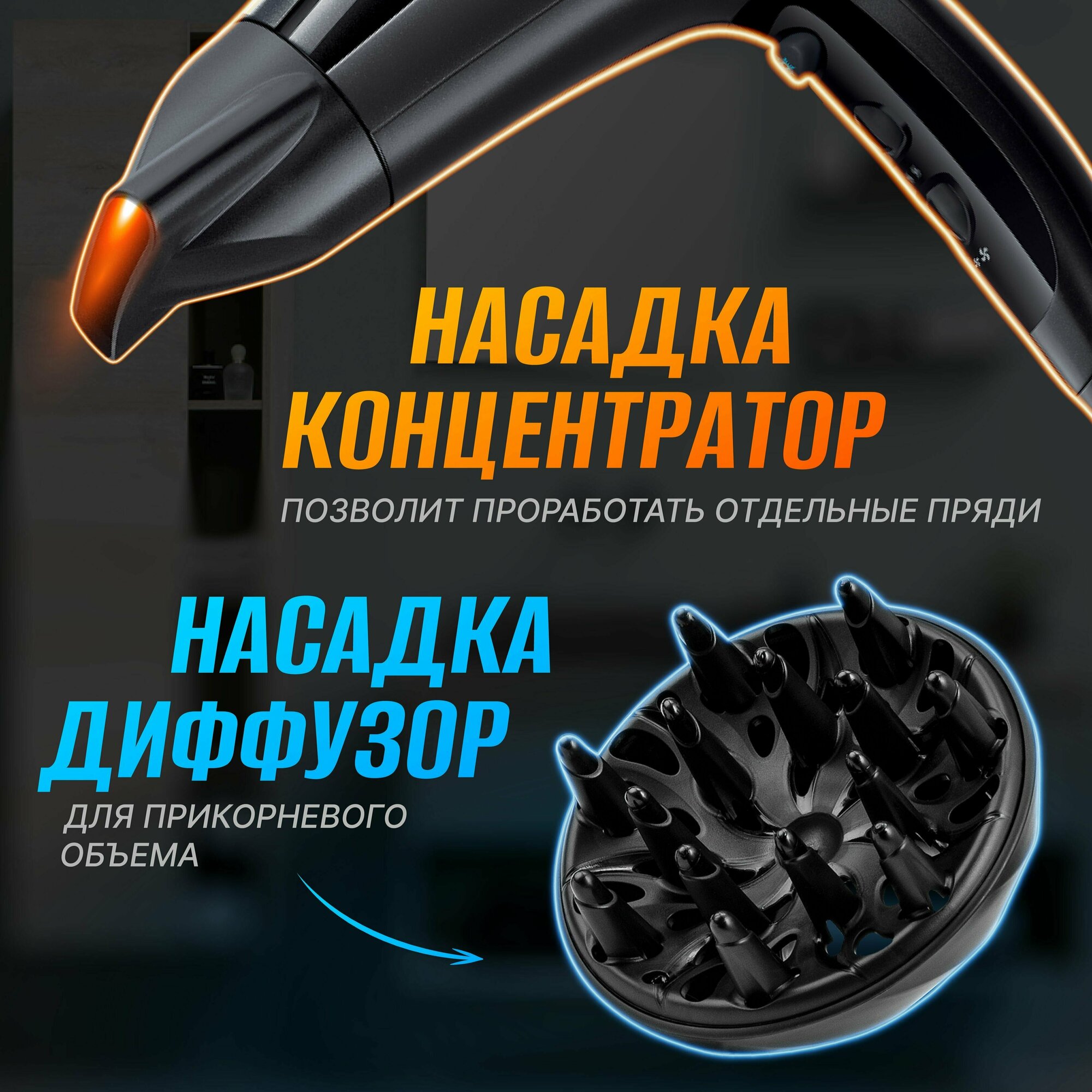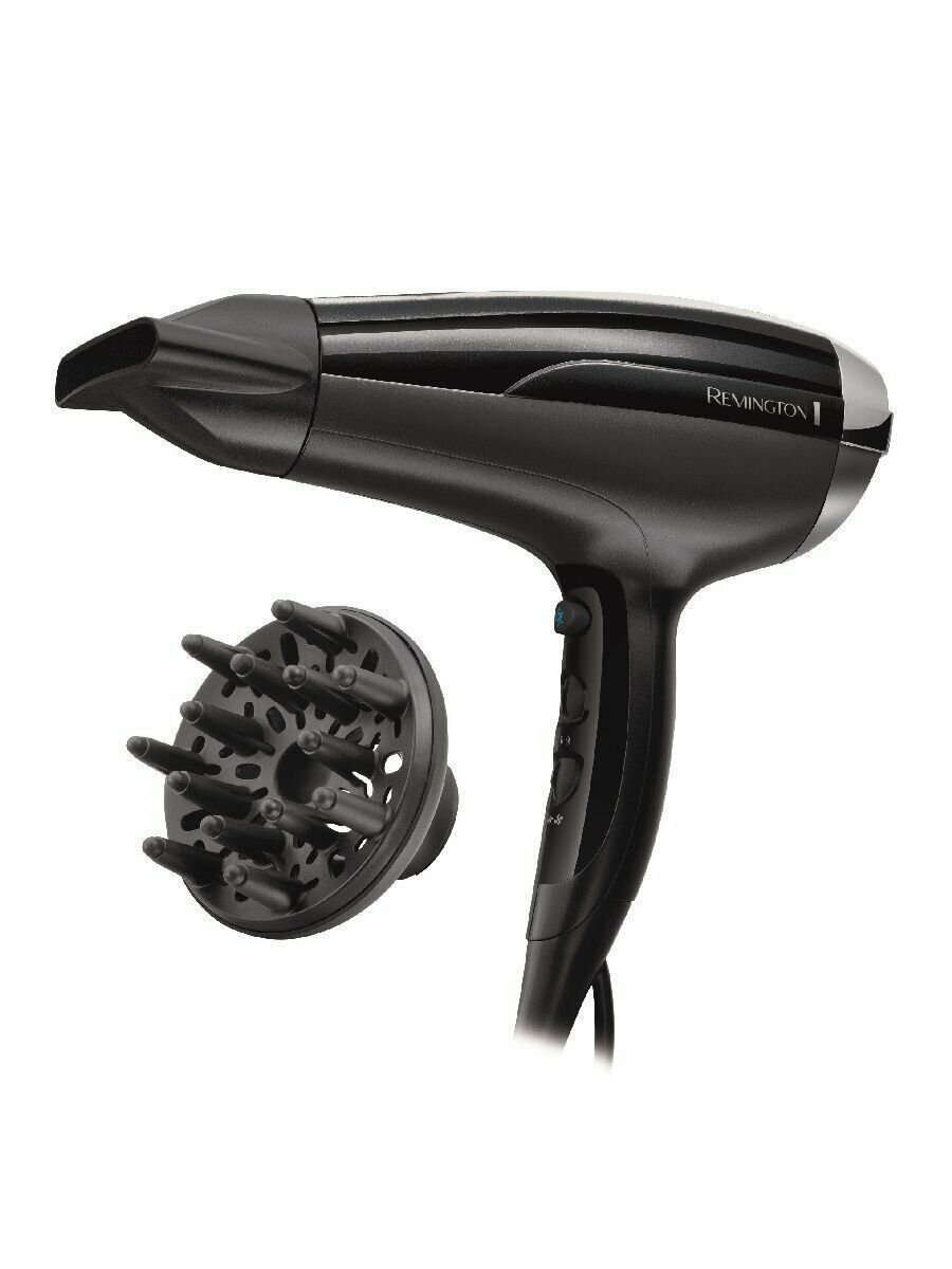 Фен для волос Remington D5215 мощность 2300 Вт., 2 скорости, 3 температурных режима, ионизация, холодный воздух, 2 насадки, гарантия 3 года, черный