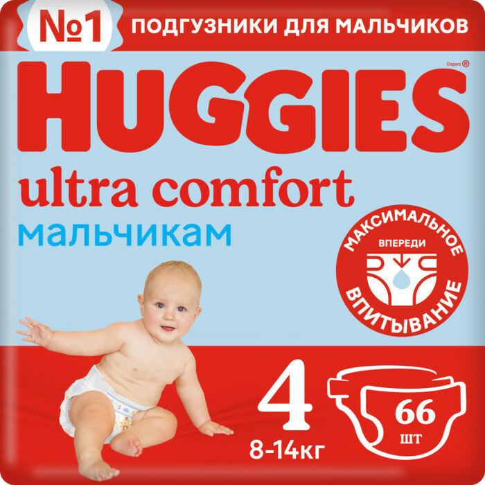 Купить Huggies подгузники Ultra Comfort для мальчиков 4 (8-14 кг), 66 шт.