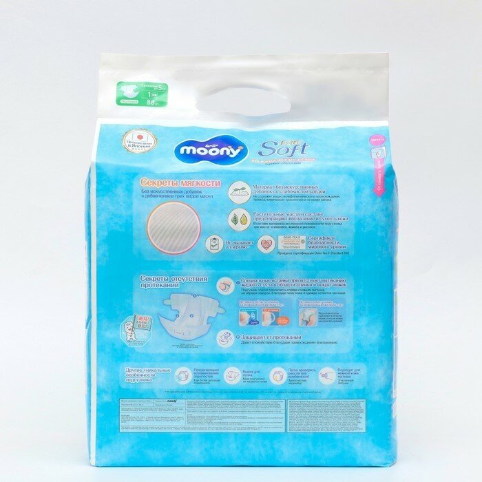 Подгузники детские Moony Extra Soft 1 NB до 5 кг, 88 шт