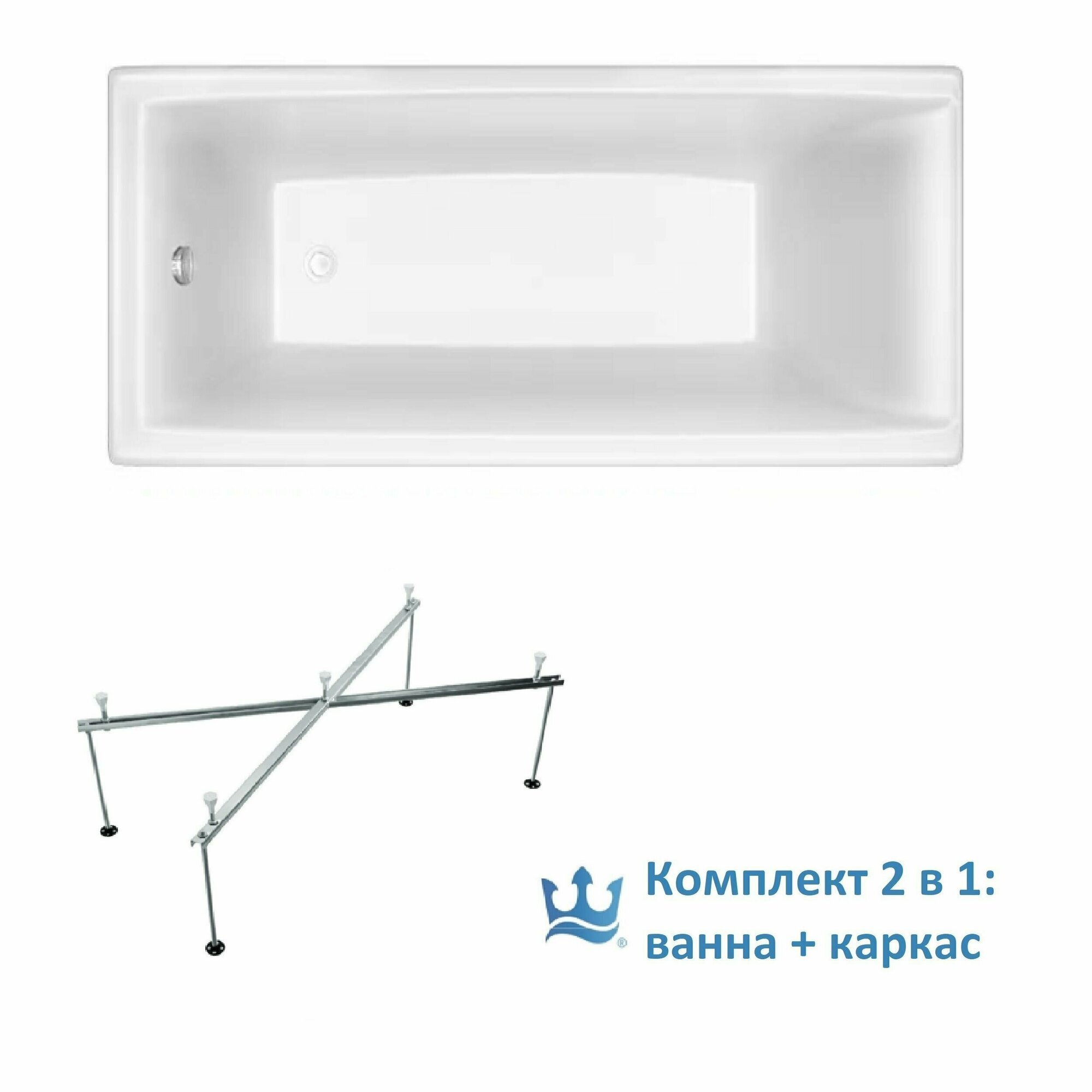 Ванна прямоугольная Тритон акриловая Джена 1700х700х590 мм (Щ0000001223), (без монтажного комплекта/ножек)